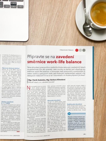 Darüber, welche Neuigkeiten die Richtlinie mit sich bringt und was es für die Arbeitgeber in der Praxis bedeuten wird, können Sie in einem Artikel lesen, den der Partner unserer Kanzlei Patrik Koželuha, der sich u.a. auf das Arbeitsrecht spezialisiert, in Zusammenarbeit mit der Rechtsanwältin Barbora Klimešová verfasste. Den Artikel finden Sie in der aktuellen Ausgabe der Zeitschrift „Statutární zástupce firmy“.