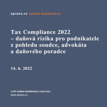 On 14 June, the online seminar Tax Compliance 2022 was held in cooperation with EPRAVO.CZ and LeitnerLeitner consulting office, which focused on tax risks for entrepreneurs. During the seminar, the participants were introduced to new developments in tax case law. Other topics included advice how to avoid disputes with the tax authorities and what the tax authorities most often focus on during tax audits. Practical examples were also used to explain how risks can be minimised and how to defend oneself effectively if necessary.