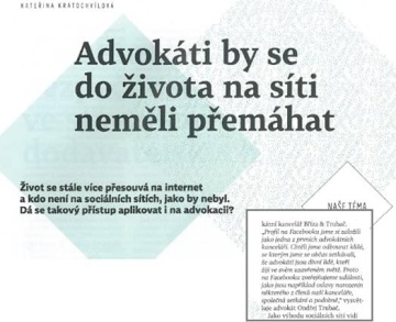 The January issue of the legal magazine "Právní rádce" also focused on this topic and the author of the article interviewed well-known Czech law firms about their opinions and tips on why and how to be well online. Ondřej Trubač outlined the view of Bříza & Trubač on this issue.
